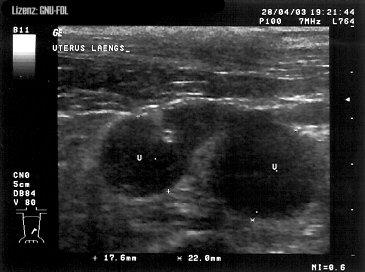 Pyometra beim Hund. Mit U gekennzeichnet sind
