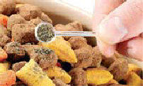 Sie das Produkt unter oder streuen Sie es über das Futter.